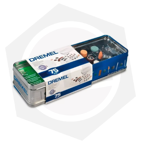Kit de Accesorios para Minitorno Dremel 261500707AC – Caja Metálica / 75 Accesorios