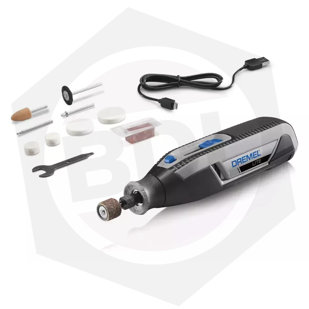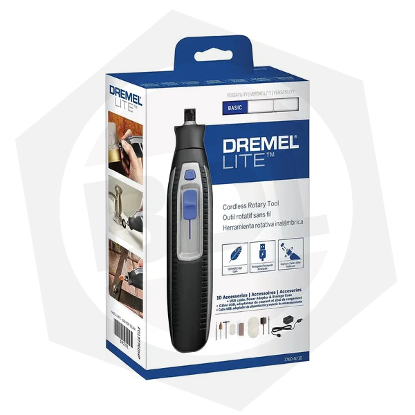 Liviana en potencia, grande en éxitos. Alterna con facilidad entre distintas aplicaciones de diferentes proyectos de DIY, ya se trate de lijar, amolar, afilar, tallar, grabar, limpiar o pulir. Desarrolla todo tipo de proyectos creativos o tareas sencillas de DIY con los 10 accesorios incluidos. Gracias al Dremel Lite inalámbrico y cargador USB, estarás listo para acometer tu siguiente proyecto de DIY en cualquier momento y lugar. Con la guía de inicio rápido y la ficha de información sobre los accesorios, contarás con lo necesario para que tu primera experiencia sea perfecta.